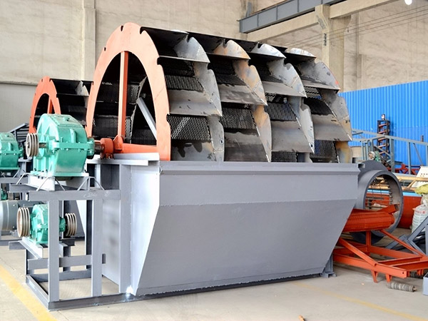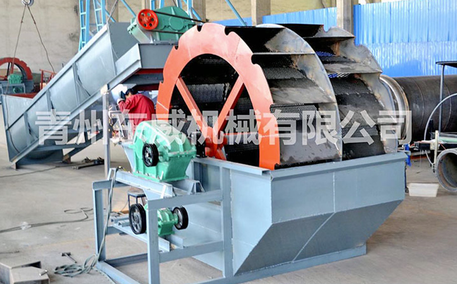 在輪斗洗砂機的工作過程中,砂石的翻滾和研磨主要依靠輪斗的旋轉(zhuǎn)來實現(xiàn)。具體來說,當(dāng)砂石通過給料設(shè)備進入洗砂機的洗槽內(nèi)后,輪斗開始旋轉(zhuǎn)。